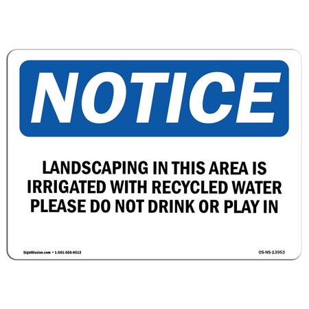 OSHA Notice Sign, Landscaping In This Area Is Irrigated With, 14in X 10in Aluminum