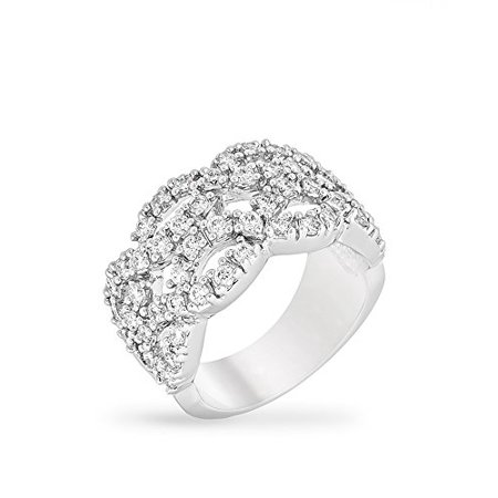 Fashioned in a versatile braided design this cocktail ring is perfect for any occasion. Our genuine rhodium finish is achieved using an electroplating process that coats the item with heavy layers of rhodium a close cousin to platinum which gives our jewelry a platinum luster.