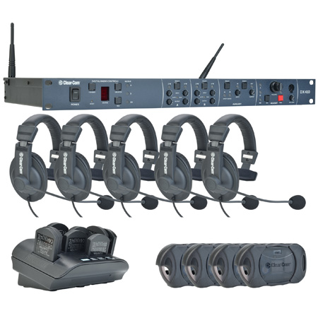 Clear-Com Communication System CLCM-DX410-4UP Li-Ion Belt Pack System with CC-15 Headsets