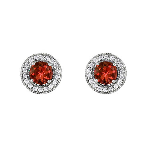Fine Jewelry Vault UBNER40936AGCZGR600 January Birthstone Garnet and Cubic Zirconia Halo Stud Earrings in Sterling Silve