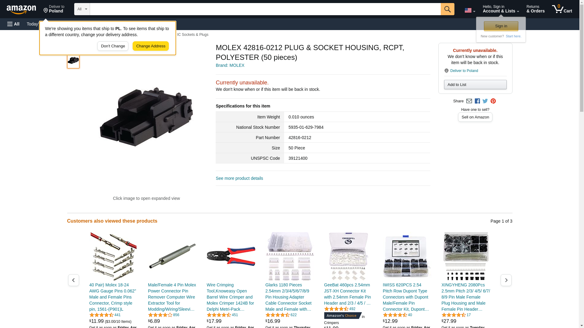 MOLEX 42816-0212 PLUG & SOCKET HOUSING, RCPT, POLYESTER (50 pieces)
