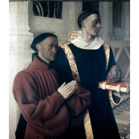 Jean Fouquet Stretched Canvas Art - Etienne Chevalier and Saint Stephen by Jean Fouquet, (Circa 1420-1480) - Large 24 x 36 inch Wall Art Decor Size.