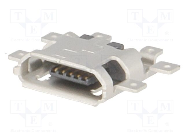 - <b>Order Unit:</b> Tape & Reel Cut 1 <b>Connector Mounting:</b>: Surface Mount <b>Contact Material:</b>: Copper Alloy <b>Contact Plating:</b>: Gold <b>Gender:</b>: Receptacle <b>No. of Positions:</b>: 5 <b>Orientation:</b>: Right Angle <b>SVHC:</b>: To Be Advised <b>USB Connector Type:</b>: Micro USB Type B <b>USB Version:</b>: USB 2.0