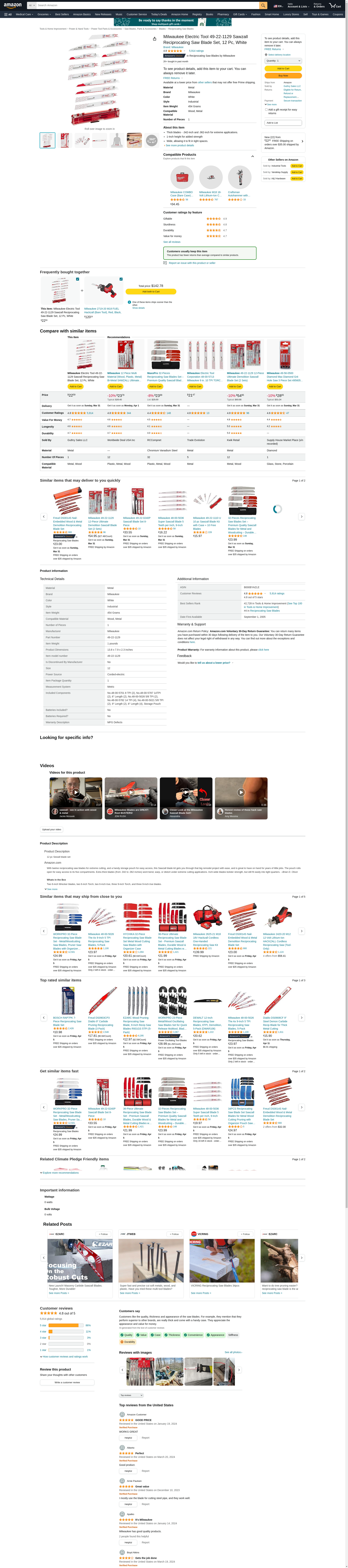Milwaukee Electric Tool 49-22-1129 Sawzall Reciprocating Saw Blade Set, 12 Pc, White (Pack of 2)