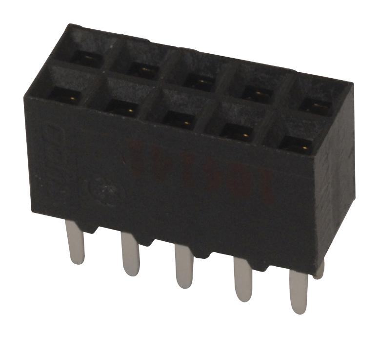 EU RoHS: Compliant ECCN (US): EAR99 Part Status: Active HTS: 8536.69.40.40 Type: Socket Strip Gender: F Number of Contacts: 10 Number of Rows: 2 Termination Method: Solder Terminal Pitch (mm): 2.54 Body Orientation: Straight Row Spacing (mm): 2.54 Maximum Current Rating (A): 2/Contact Maximum Voltage Rating: 333VAC Insulation Resistance (MOhm): 5000 Maximum Contact Resistance (mOhm): 12 Minimum Operating Temperature (°C): -65 Maximum Operating Temperature (°C): 105 Packaging: Tube Product Length (mm): 12.7 Product Depth (mm): 5.03 Product Height (mm): 6.73 Tail Length (mm): 3.18 Mounting: Through Hole