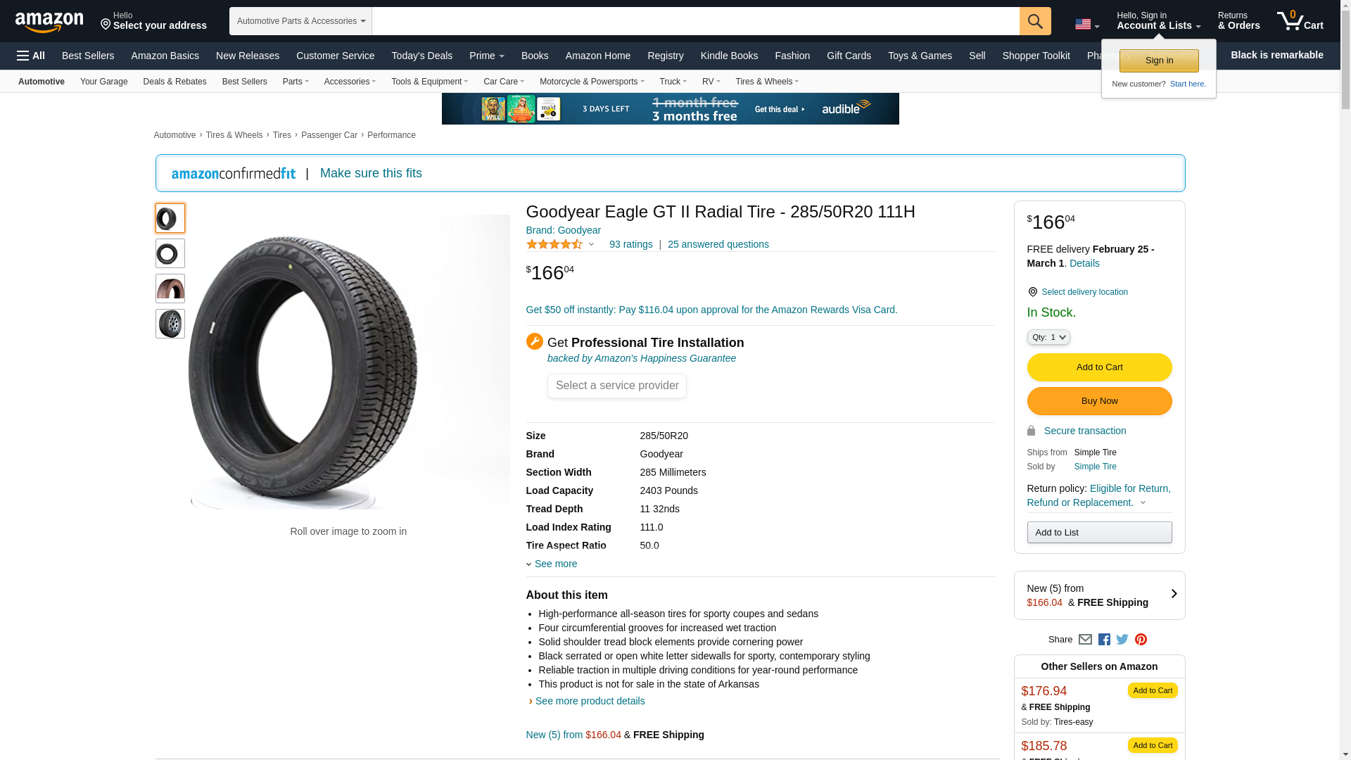 Goodyear Eagle GT II 285/50R20 Tires | 106087625 | 285 50 20 Tire