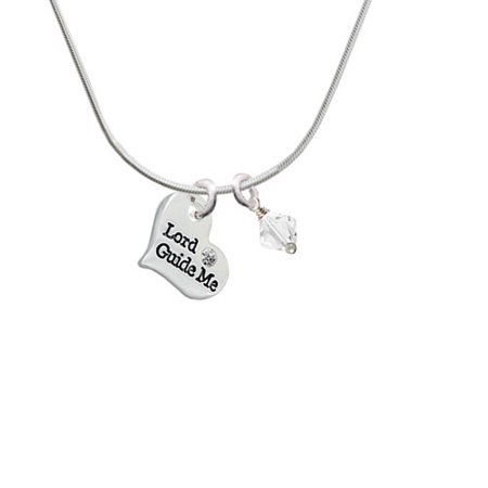 Silver Tone Small Lord Guide Me Heart - Clear Bicone Crystal Necklace. Small Lord Guide Me Heart is approximately 0.57 x 0.53 x 0.12 inches (HxWxD) with clear crystal. Small antiqued cross on the back inches (HxWxD). Wear as a reminder that God has a plan. 18 Inch Snake Chain Necklace with a Lobster Claw Clasp. Hand wrapped crystal bicone is approx: 6mm. We use Swarovski Crystallized Elements. Available in many colors. We are a family owned company in the U.S.A. since 1977. PLEASE NOTE: Our products are lead safe, but are not intended for children 14 years and younger.