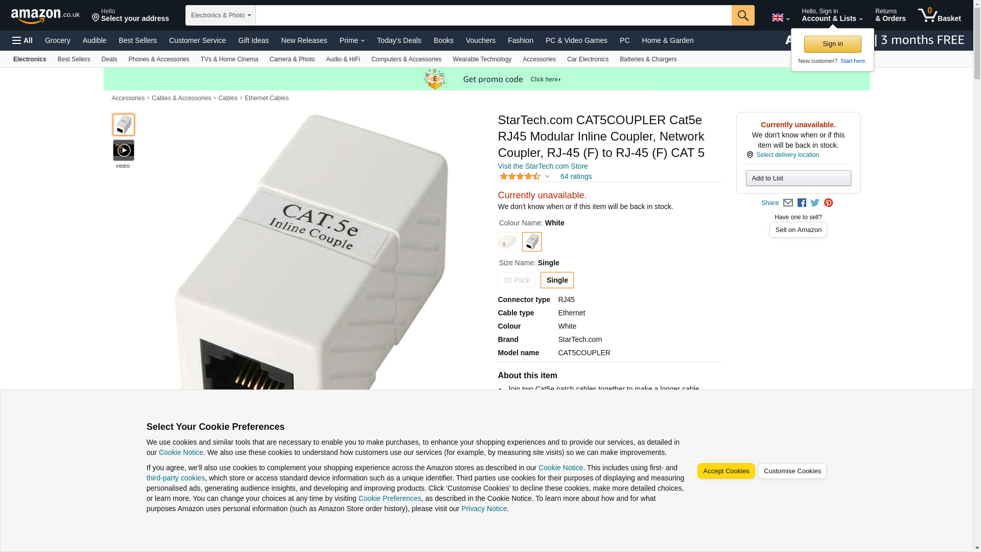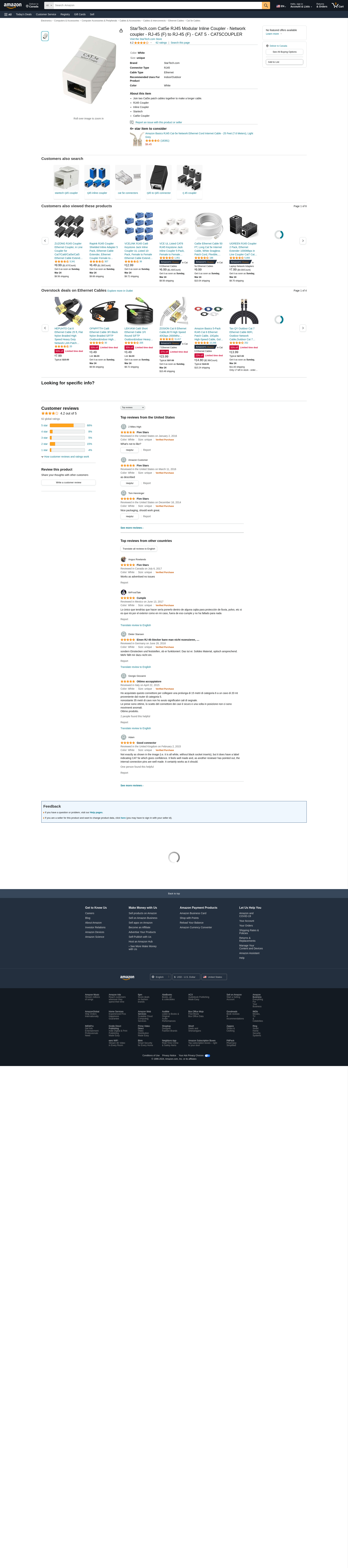 Only the best-quality ponents are used when StarTech.'s expert manufacturing team creates its cable supplies and this inline coupler adapter is no different. This Category 5 Inline Coupler Adapter joins adjacent RJ45 work cables together.Primary InformationNetwork Cable Type : Network Plug Cable Technology : N/A Left Connector Gender : Female Right Connector Gender : Female Left Connector Type : RJ-45 Right Connector Type : RJ-45 Networking / Compliant Standards : EIA/TIA-568 Category 5 Dimensions&MiscellaneousLength : N/A Enclosure Color : White Service&SupportService & Support Type : Limited lifetime warranty Special FeatureRoHS : Yes UNSPSC CodeUNSPSC Code : 43220000