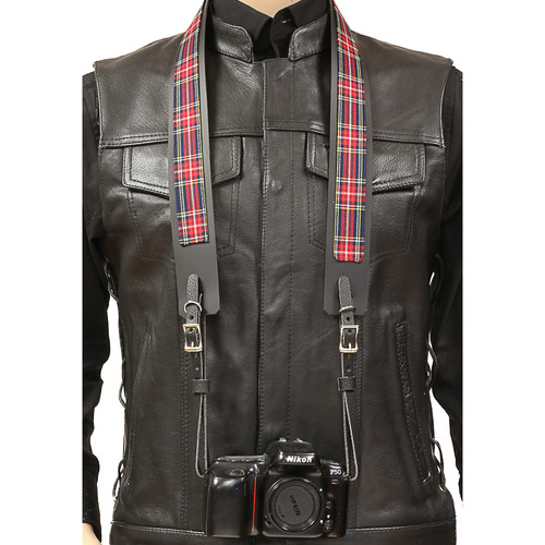 Funk Plus 1.75" Wide Leather Camera Strap with 0.5" Buckle (Blue Plaid)