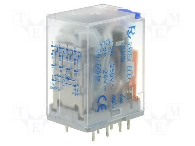 Recoy/RAYEX ELECTRONICS LB4HN-48DTP | Relay: electromagnetic; 4PDT; Ucoil: 48VDC; Icontacts max: 5A; PCB