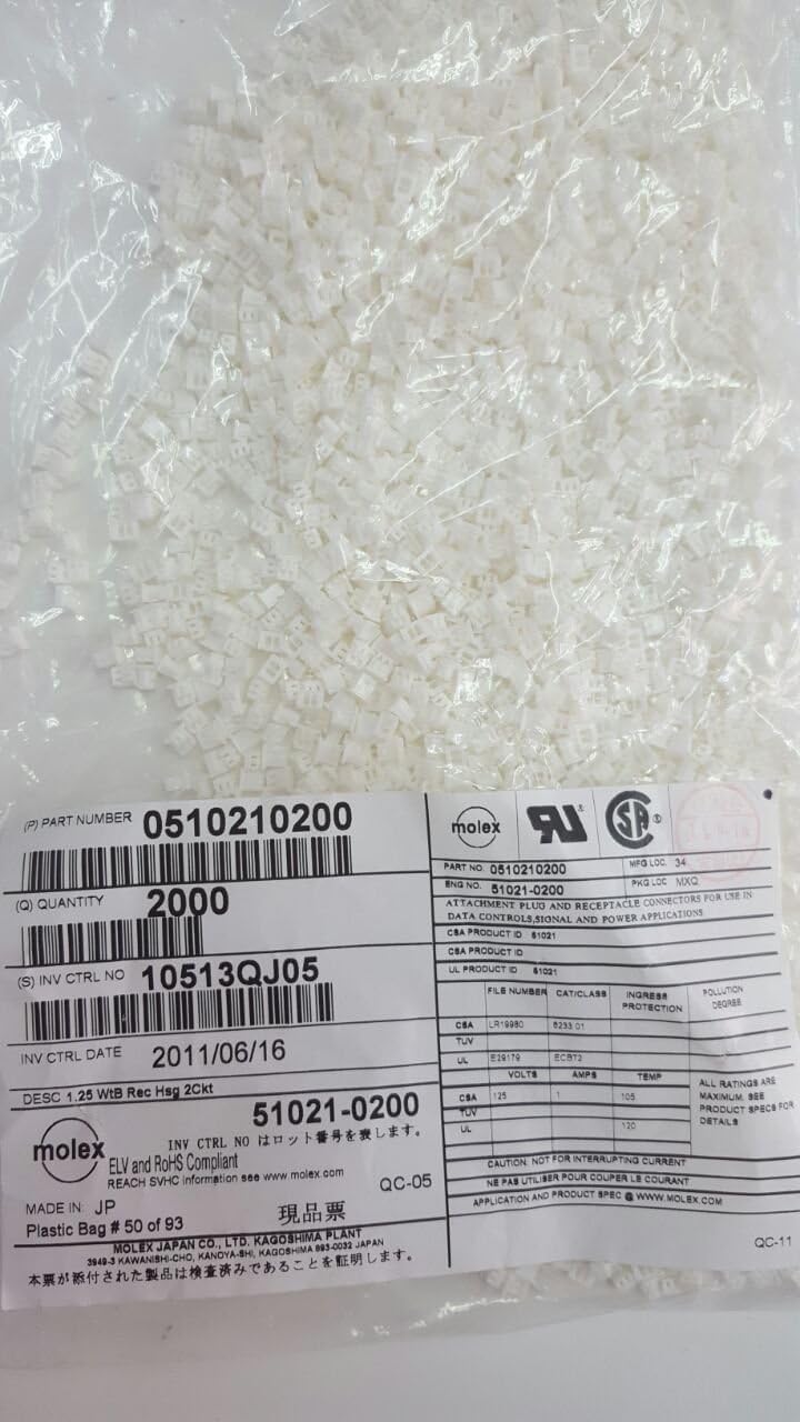| Waldom | MOLEX 51021-0200 | 900 | 199534 | 1 | 900 @ $0.06, 5000 @ $0.05, 11000 @ $0.05, 22000 @ $0.05, 200000 @ $0.05 |