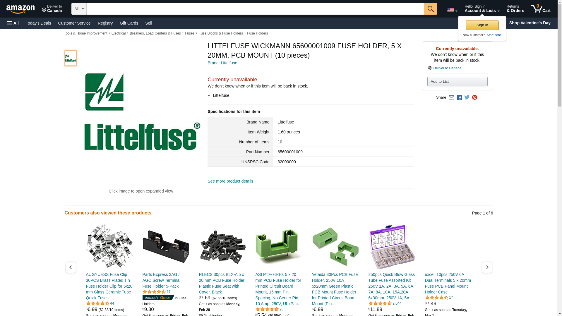 Littelfuse Fuse Holder, 250 V, 250 V, 10 A, Pcb Fuse Holder, Solder Lug, 1 Rohs Compliant: Yes - 65600001009