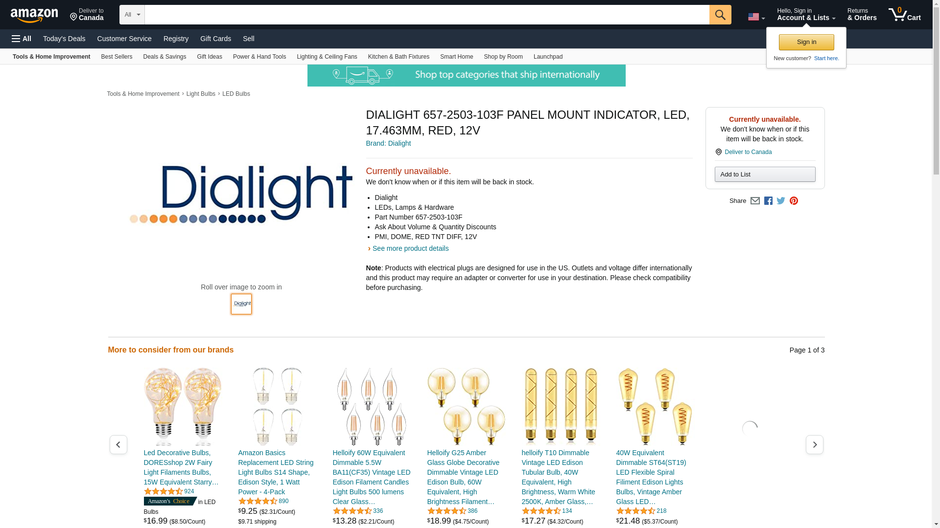 | Waldom | DIALIGHT CORPORATION 657-2503-103F | 10 | 74 | 1 | 10 @ $10.48, 30 @ $9.14, 60 @ $8.97, 70 @ $8.64 |