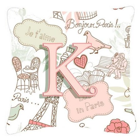 Caroline's Treasures CJ2002-KPW1414 Letter K Love in Paris Pink Fabric Decorative Pillow Machine Washable, Indoor Outdoor Decorative Pillow for Couch, Bed or Patio, 14Hx14W