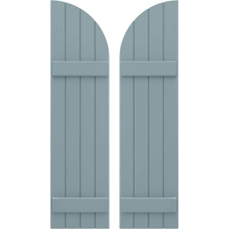 Ekena Millwork ARW101BQ414X67SBH Americraft Four 2 Exterior Real Wood Joined Board-n-Batten Shutters w/Arch Top (Per Pair), 14"W x 67"H, Peaceful Blue