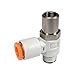 <p>Using SMC speed controls with built in one-touch fittings minimizes installation time, reduces mounting height and enables a more compact machine design. These speed controls allow the body to be rotated to facilitate simple installation. Available in thread sizes from M3 to 1/2 in both inch (NPT) and metric R(PT) and with tube sizes from 3.2mm to 12mm OD (metric) and 1/8 to 1/2 OD (inch) and with optional elbow and universal style (increased flexibility) and meter-in and meter-out, these speed controls are designed to meet most applications. <ul><li>Flat head screw driver adjustable speed controller<br>with one-touch fittings</li><li>Flow rate can be adjusted with a flat head screw driver</li><li>Prevents inadvertent manual operation</li><li>Elbow style</li><li>Meter-in or meter-out control</li><li>Body sizes: M5, 1/8, 1/4, 3/8, 1/2</li><li>Various port sizes in both inch and metric</li></ul><br /></p>