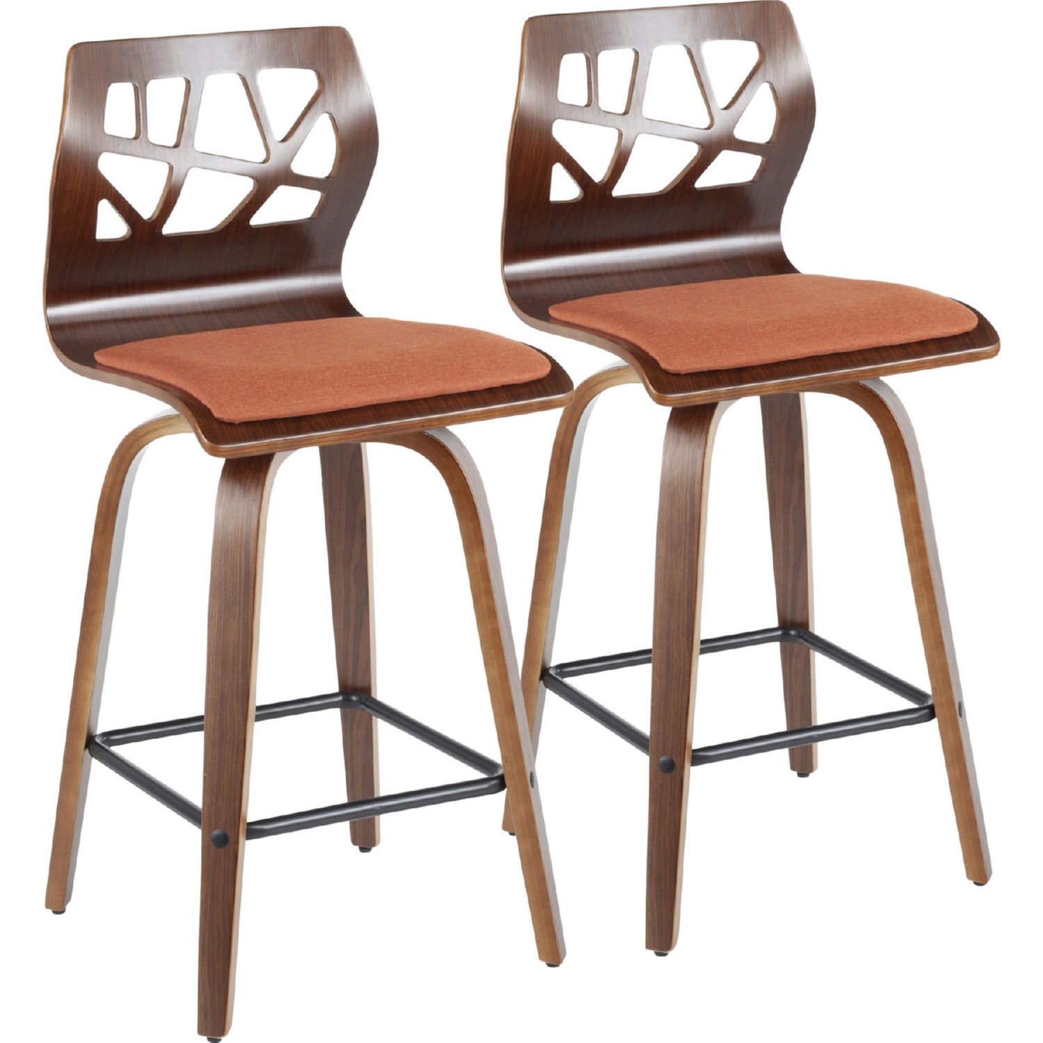 Lumisource B26-FOLIAX WLO2 Folia 26" Counter Stool in Orange Fabric & Walnut Finish (Set of 2)