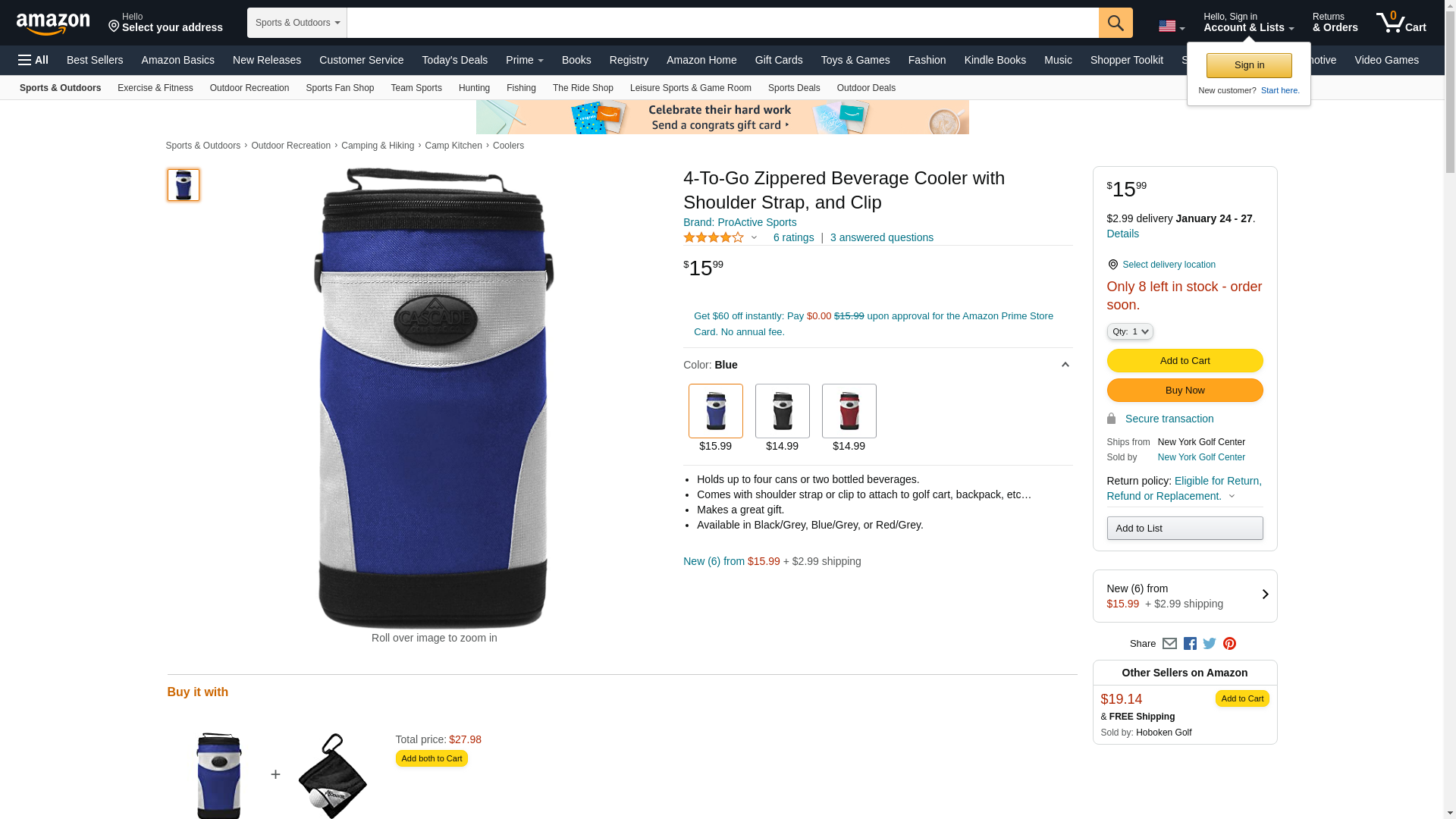 ProActive Sports 4-To-Go Zippered Beverage Cooler with Shoulder Strap, Blue