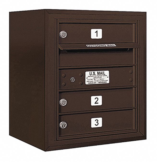 Salsbury Industries 3805S-03ZFU Horizontal (Includes 3705S-03ZFU 3805S-BRZ Enclosure) -Single Column Doors-Bronze Loading Access Surface Mount 4C Mailbox Unit-SGL Col-3 MB1 DRS Front-USPS