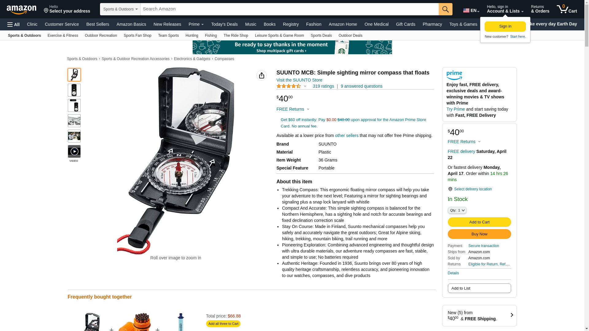 Suunto SS012277013 Suunto Amphibian Compass #Mcb BlackSuunto SS012277013 Suunto Amphibian Compass #Mcb Black Features:; Lightweight, floatable polypropylene lid; Dial is marked in 2; increments; Declination scale; Detachable snap-lock lanyard with whistle included; Weight: 1.4 oz. (40 g)