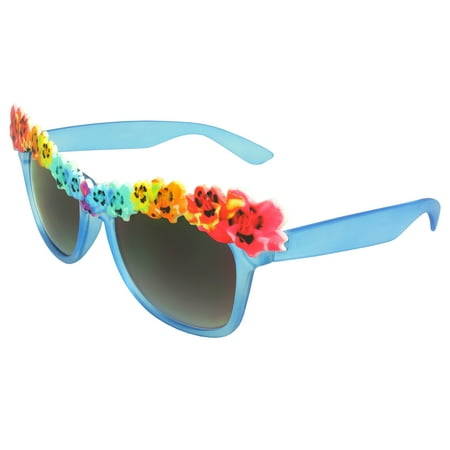 <ul> <li> Color options: </li> <li> Style: Retro Horn Rimmed</li> <li> Model: TU9387-BUPB</li> <li>Frame: Blue, Multicolor</li> <li>Lens color: Purple black</li> <li>Protection: UV400</li> <li>Nose pads: Contrasting</li> <li>Includes: One stretchable micro-fiber pouch</li> <li>Measurements: Lens 60mm x Bridge 18mm x Arms 135mm</li> </ul>