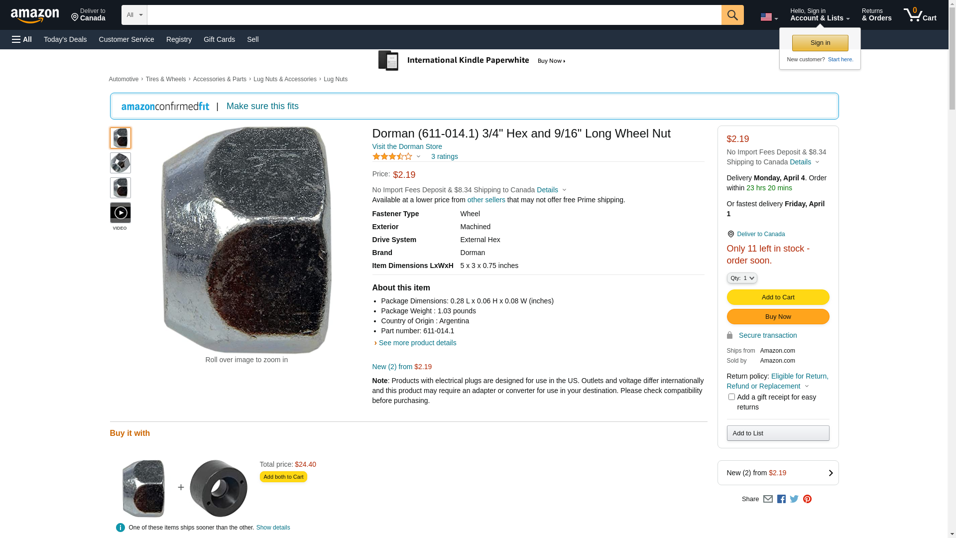 Dorman (611-014.1) 3/4" Hex and 9/16" Long Wheel Nut