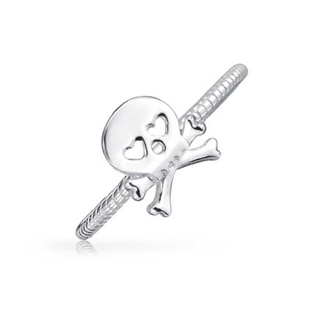 Bling Jewelry Goth Heart Skull Crossbones Stackable Sterling Silver Ring