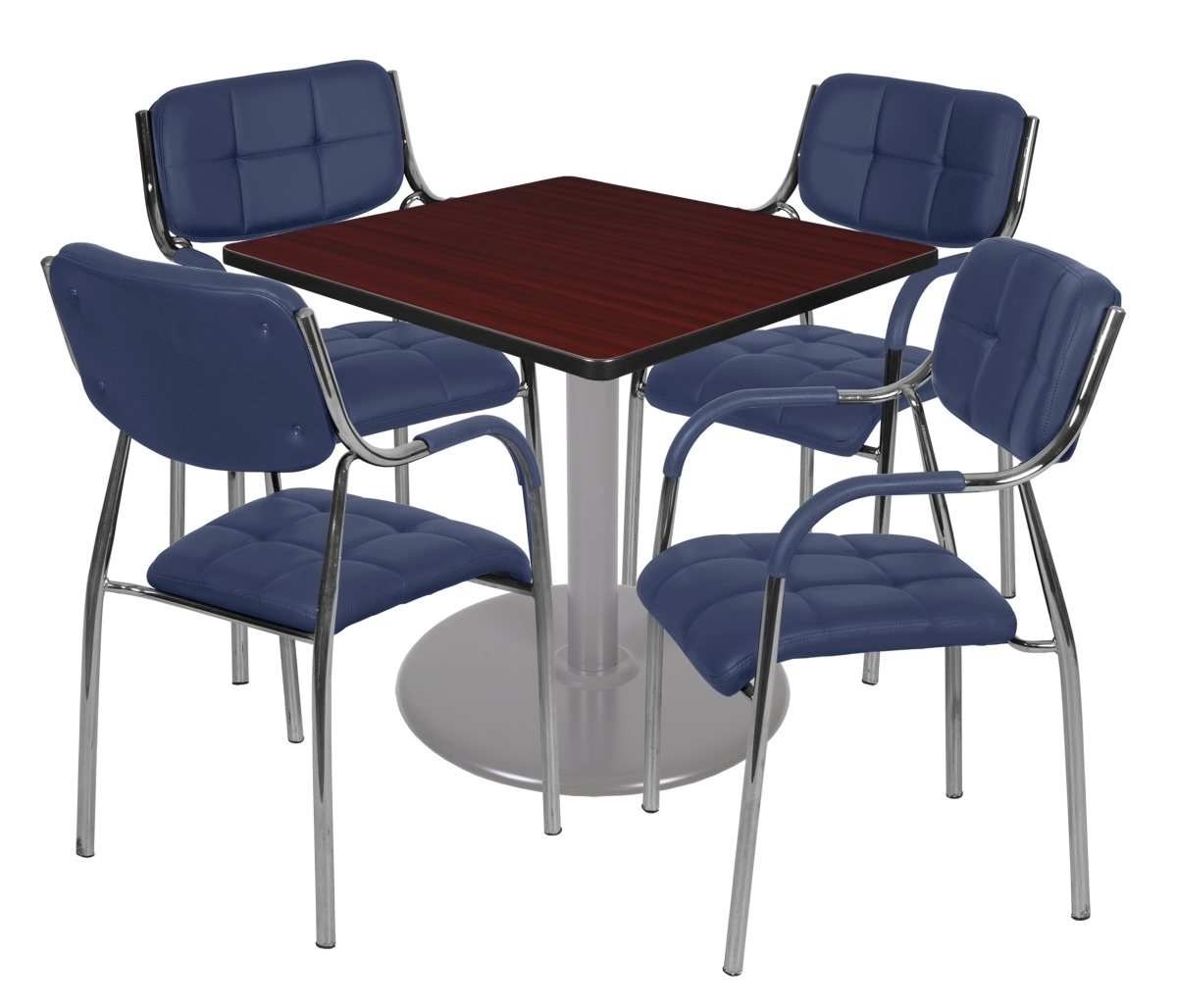 - Versatile table and chair set includes one 36-inch square table with a platter style base and four Navy Uptown side chairs