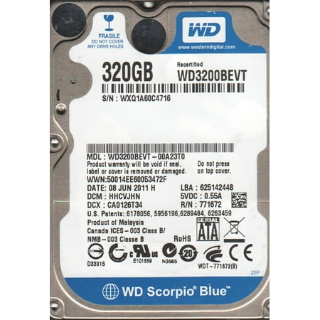 WD3200BEVT-00A23T0 WD WD 320GB 2.5in SATA 5400rpm 8MB HDD WD3200BEVT-00A23T0 Scorpio Recertified