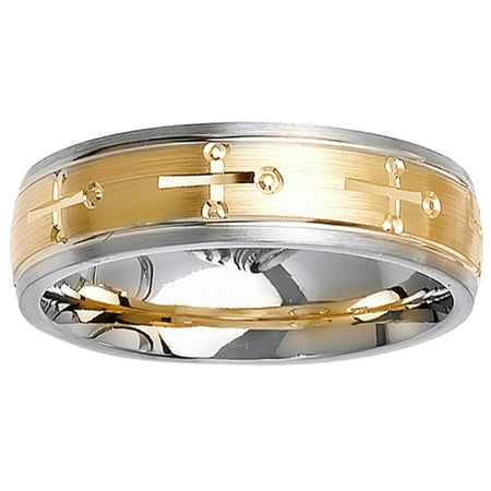 "14K Two Tone Gold Religious Christian Women's Wedding Band (6mm) Size-7"