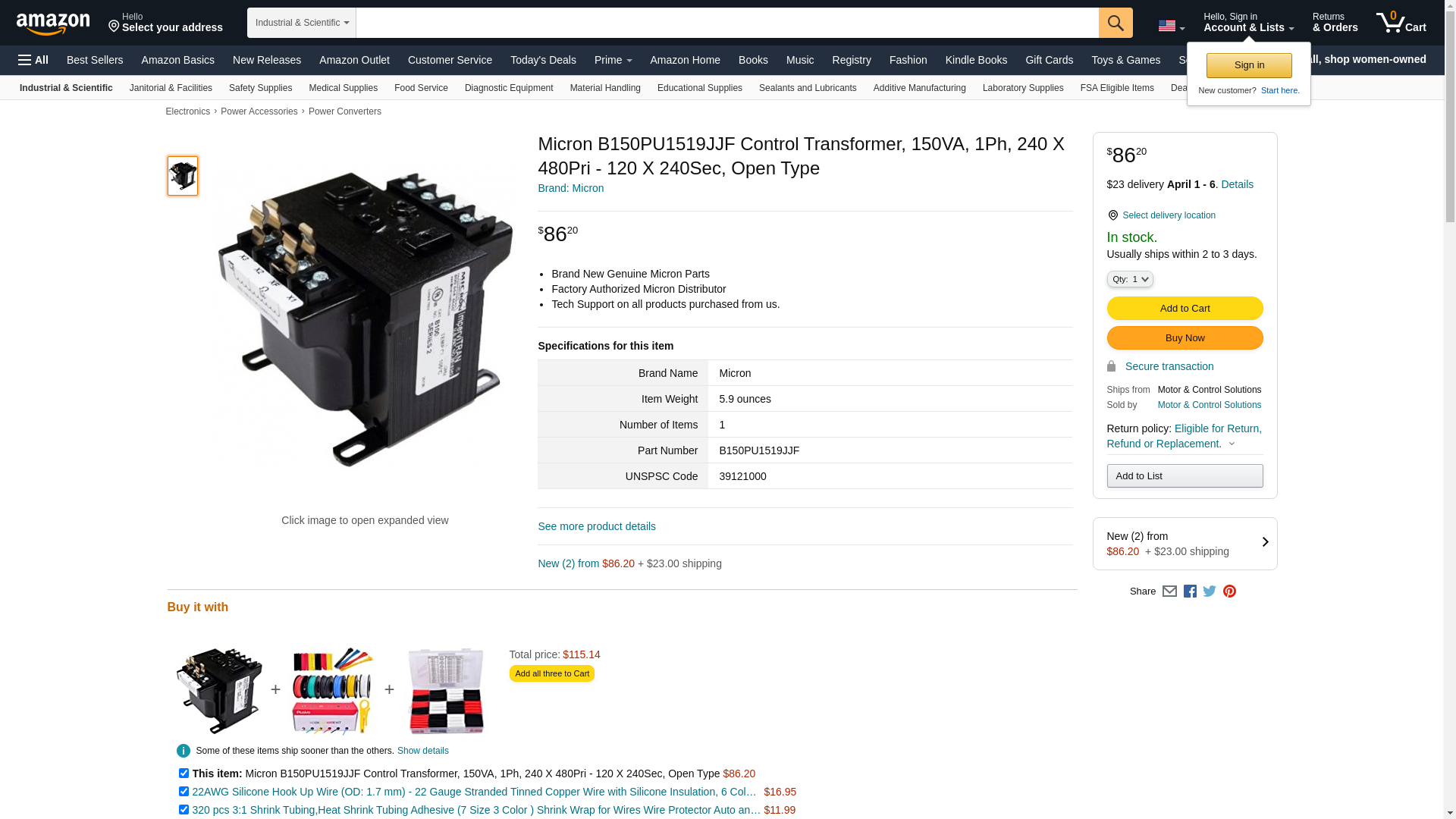 | B150PU1519JJF | 1 | Available | 1 | 1 @ $109.09 |