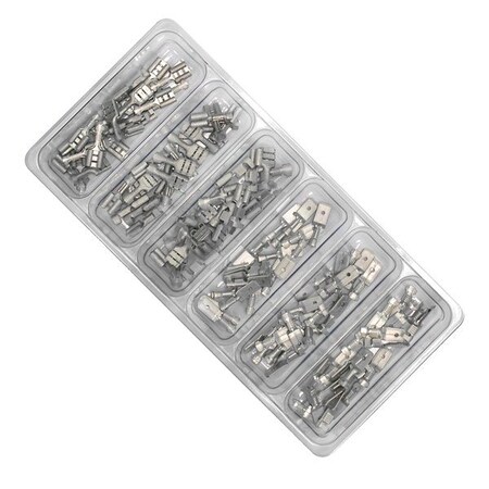 AMP FASTON TERMINAL KIT; Connector Kit Type:Terminals & Splices; Kit Contents:120-Pcs of 0.25" FASTON 14-10, 14-12, 18-14, 22-18AWG Tabs & Receptacles; Product Range:- RoHS Compliant: Yes