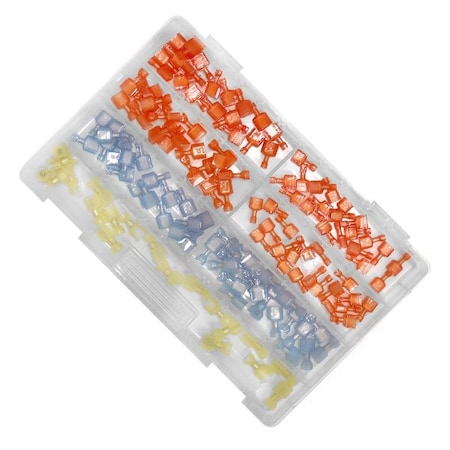 - <b>Price For:</b> Each<b>Return policy:</b> Item is non-cancelable and non-returnable<b>Order Unit:</b> Each 1 <b>Connector Kit Type:</b>: Terminals & Splices <b>Kit Contents:</b>: 140-Pcs of 187 & 250 Series 12-10, 16-14, 22-18AWG Ultra Fast Fully Insulated FASTON Tabs <b>RoHS Compliant:</b>: Yes <b>SVHC:</b>: No SVHC (16-Jun-2014)