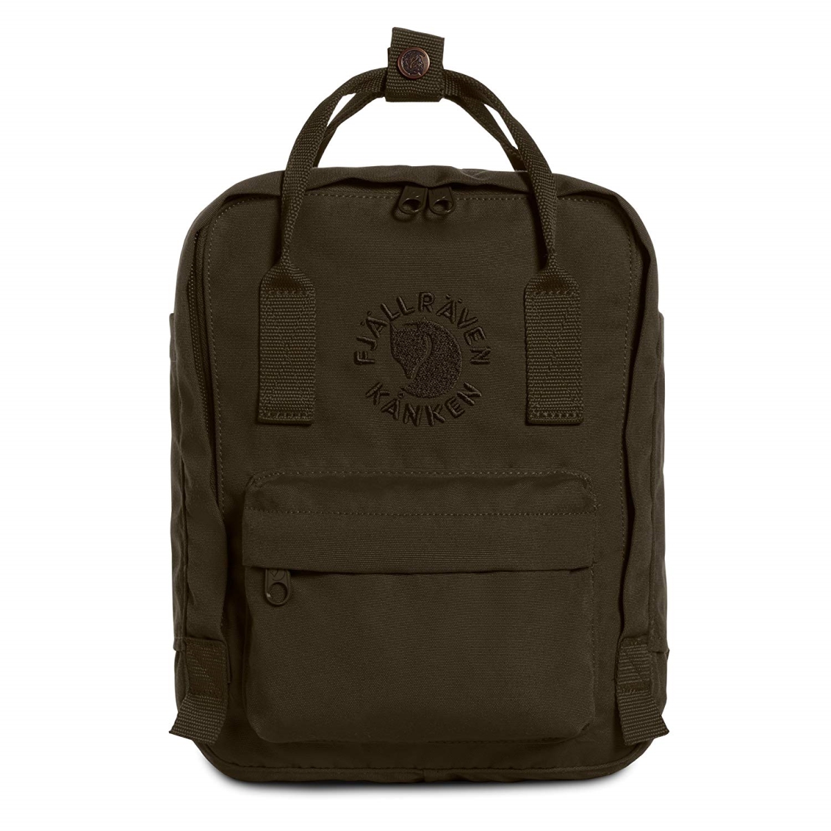 Fjallraven, Kanken, Re-Kanken Mini Recycled Backpack for Everyday Use, Heritage and Responsibility Since 1960, Dark Olive