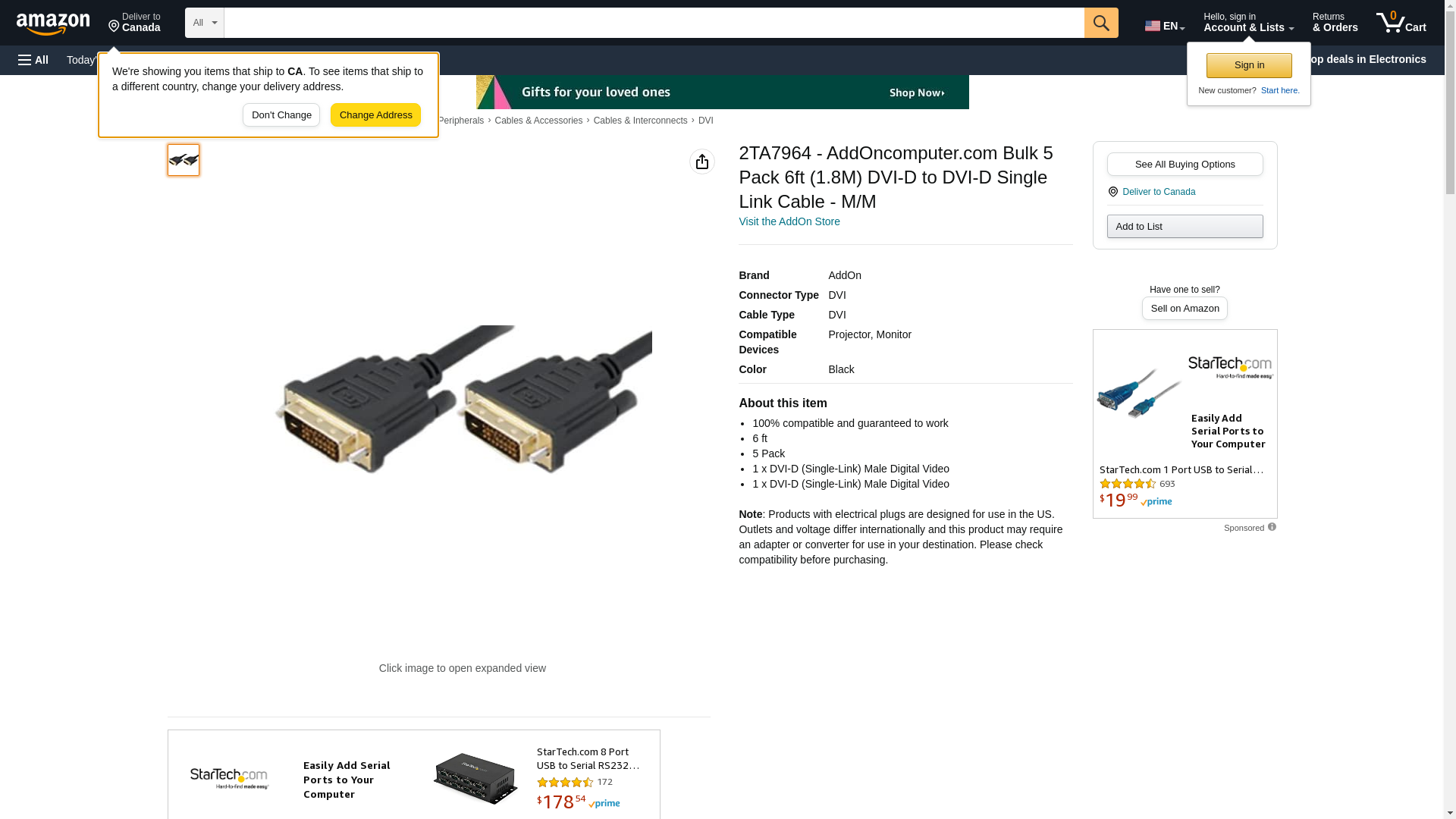 2TA7964 - AddOncomputer.com Bulk 5 Pack 6ft (1.8M) DVI-D to DVI-D Single Link Cable - M/M