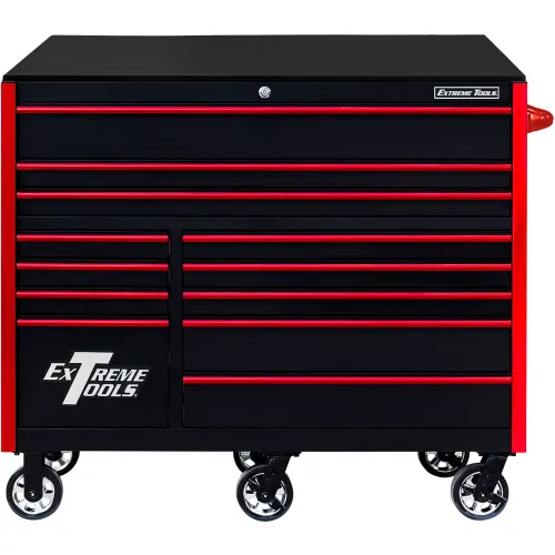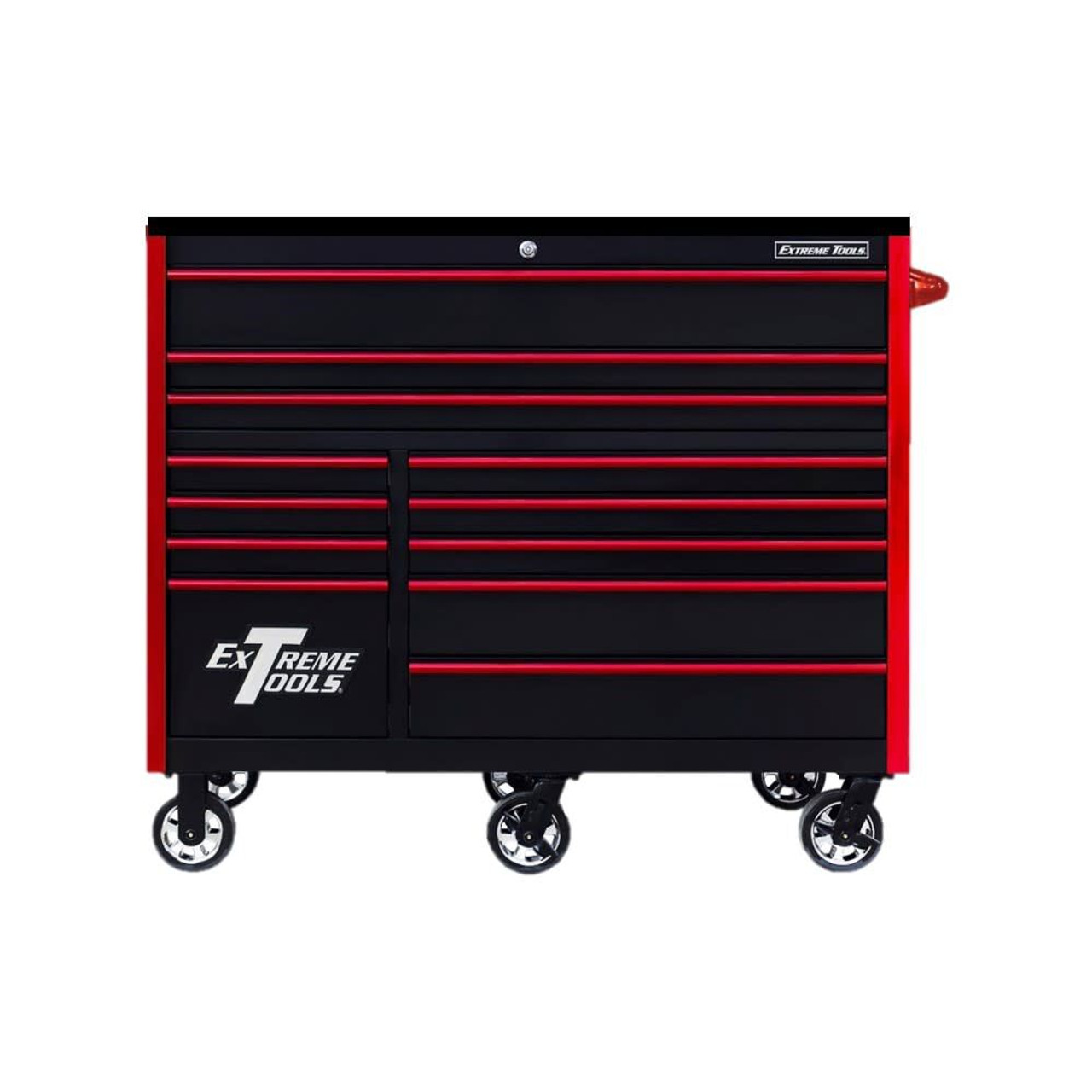 Extreme Tools RX552512RCBKRD-X 55" Black Roller Cabinet with Red Drawer Pulls | JB Tools