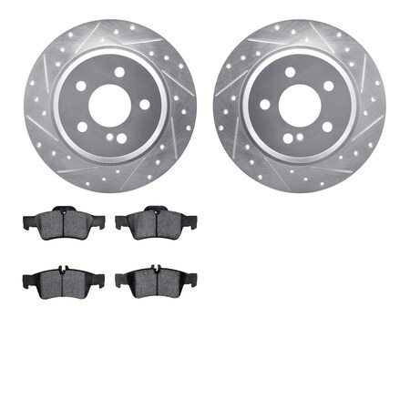 Dynamic Friction Company Rear Brake Rotors-Drilled and Slotted-Silver with 5000 Advanced Brake Pads 7502-63042