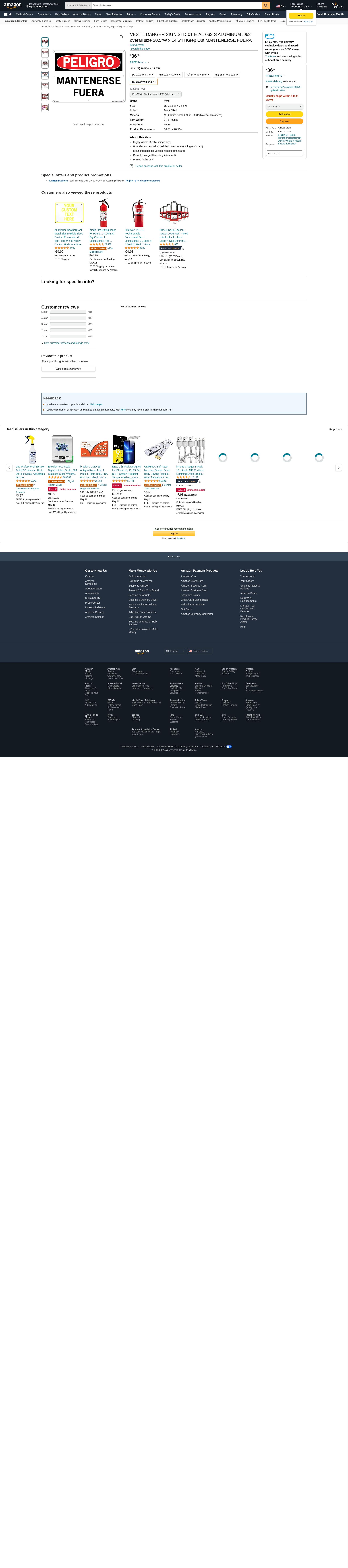 VESTIL DANGER SIGN SI-D-01-E-AL-063-S ALUMINUM .063" overall size 20.5"W x 14.5"H Keep Out MANTENERSE FUERA