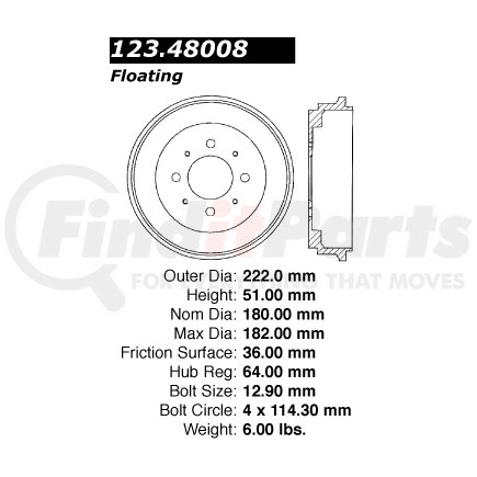 Centric C-Tek Standard Brake Drum 123.48008 | 123.48008
