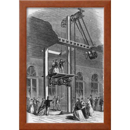 <ul> <li>Title: Woodcut of Early Elevator Model</li> <li>Product Type: Framed Art Print</li> <li>Framed in SOHO Pecan</li> <li>Arrives ready-to-hang for fast, simple installation</li> <li>Framed Size: 15.5x22 in.</li> <li>Handcrafted in the USA</li> </ul>