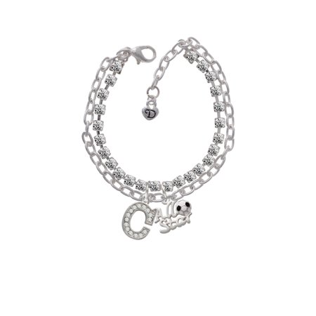 Silver Tone All Star - Soccerball -C- Double Strand Crystal Cup Chain Madison Charm Bracelet with Beaded Crystal Initial. Silver Tone, hand enameled charms. Charm size is approx. 0.57 x 0.63 x 0.13 inches (HxWxD) including loop. Double Strand Crystal Madison Charm Bracelet is 6.5 Inches with a 1 Inch Extender. Bracelet is made from 4mm link chain and 4mm Clear Crystal Cupchain with Lobster Claw Clasp. Beaded Crystal Initial is approx. 0.72 x 0.48 x 0.10 inches (HxWxD) including loop. Available in A-Z. Please contact us with your order number if you would like to customize the initial. Featured item is an exclusive Delight & Co. design. We are a family owned company for over 35 years in the U.S.A. PLEASE NOTE: Our products are lead safe, but are not intended for children 14 years and younger.