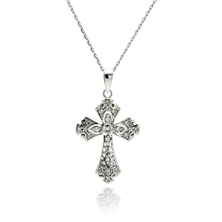 Sterling Silver Rhodium Plated Cross CZ Necklace (Silver Palace, Inc.)