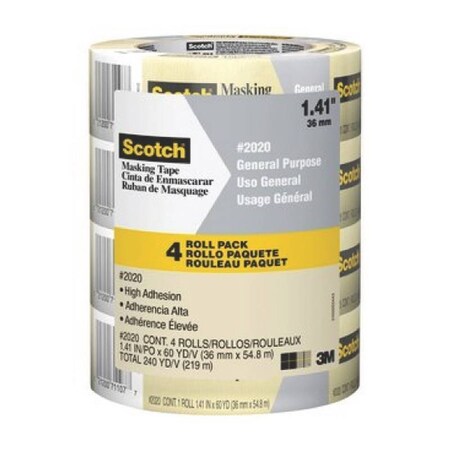 - READY. SET. TAPE!: 4 rolls of 1.41 inches x 60.1 yards of Scotch Contractor Grade Tan Masking Tape, a general purpose masking tape designed for use on non-damageable surfaces; one 60 yard roll will cover a 15x15 room