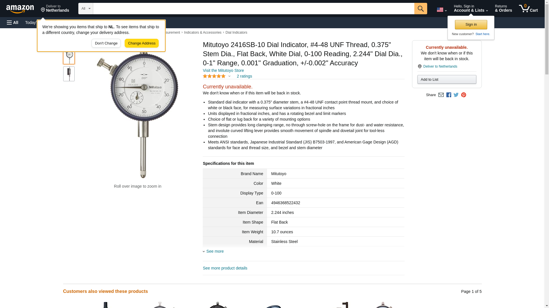 | Feature | Standard dial indicator with a 0.375" diameter stem, a #4-48 UNF contact point thread mount, and choice of white or black face, for measuring surface variations in fractional inches |