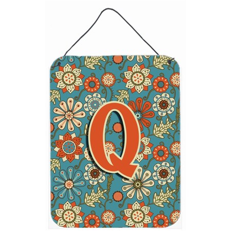 Letter Q Flowers Retro Blue Wall and Door Hanging Prints