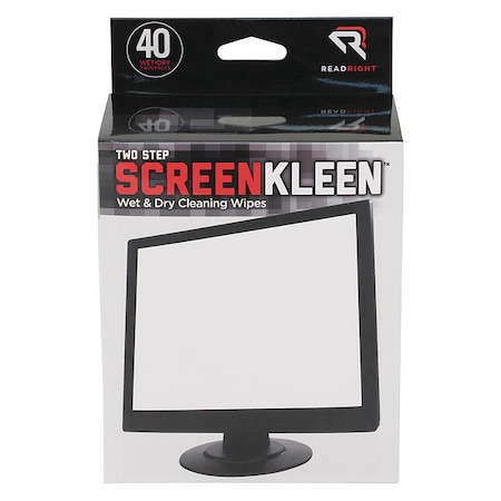 <B>Read Right : Kleen & Dry Screen Cleaner Wet Wipes, Cloth, 5 x 5, 40 per Box </B><BR> Heavily saturated wet wipe neutralizes static and removes dust, dirt and oil. Strong, dry, absorbent cloth dries and polishes screen to streak-free clarity. Ideal for large or heavily soiled computer and display screens, TVs and more. Not for use on nylon mesh/polarized antiglare screens. Global Product Type: Towels & Wipes-Wet Wipes; Towel/WipeType: Wet Wipes; Application: Micrographics Screen; TV; Applicable Material: Glass; Plastic; Vinyl.:<BR>Manufactured by.: Read Right