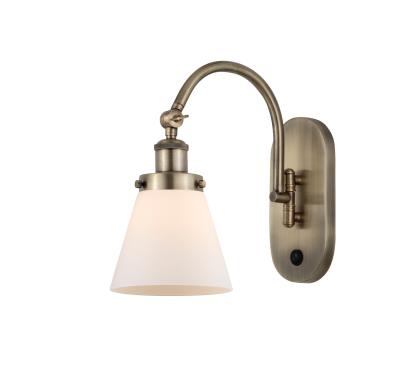 This 1 light Sconce from the Franklin Restoration Cone collection by Innovations Lighting will enhance your home with a perfect mix of form and function. The features include a Antique Brass finish applied by experts. Product Features Include: Brand: Innovations Lighting, Collection: Franklin Restoration Cone, SKU: 918-1W-AB-G61, UPC: 729625064036, Category: Wall Sconce, Finish: Antique Brass, Glass: Matte White, Material: Steel/Cast Brass/Glass, Designer: Bruno Marashlian, Width: 6.25 in., Height: 12.50 in., Extension/Depth: 13.13 in., Backplate/Canopy Width: 4.50 in., Backplate/Canopy Length: 0.00 in., Backplate/Canopy Thickness: 0.75 in., Height from Center of Wall Opening: 2.25 in., Install Position: Reversible/Duo Mount, Weight: 2.80 lb., Warranty: 2 Year Finish, Lifetime Electrical, Bulbs Included: Yes, Bulb Category: Incandescent, Primary Bulb(s): 1 x 60.00 watts Medium Base ST64 Vintage, Color Temperature: 2200K, Color Rendering Index: 99.9000, Total Lumens: 220, Voltage: 120, Safety Rating: Damp Location