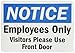 | Feature | Laminated Vinyl Label, legend "Employees Only, Visitors Please Use Front Door" |