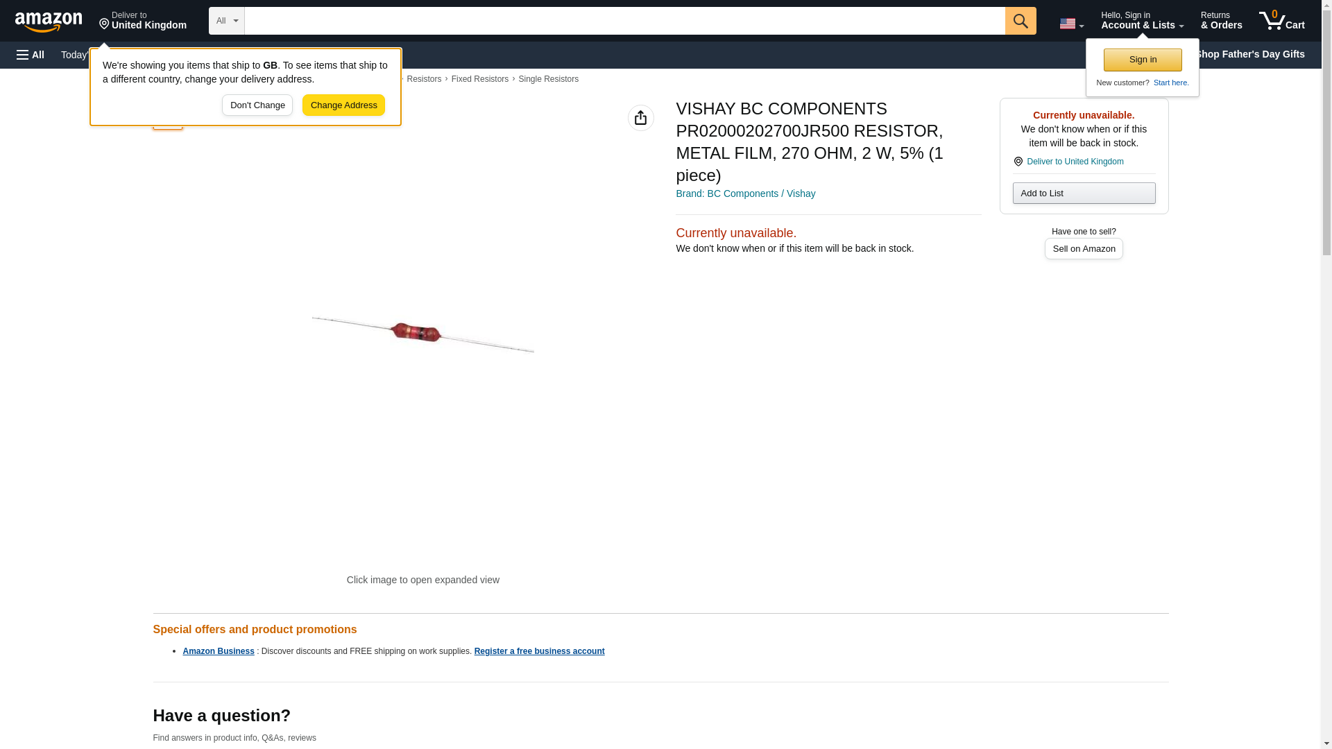 VISHAY BC COMPONENTS - PR02000202700JR500 - RESISTOR; METAL FILM; 270 OHM; 2 W; 5%