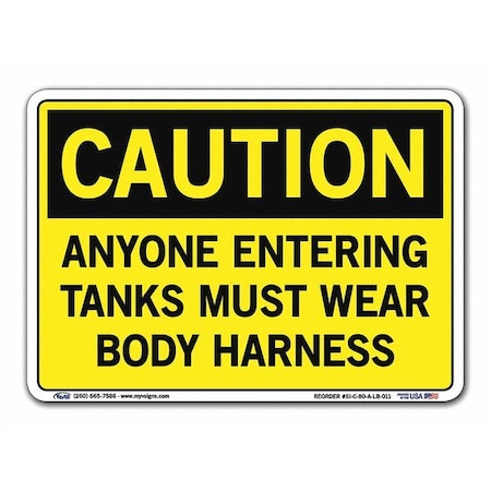Vestil SI-C-80-A-LB-011 ANYONE ENTERING TANKS MUST WEAR BODY HARNESS Caution Label, Vinyl, 0.011" Overall Size, 10.5" W x 7.5" H